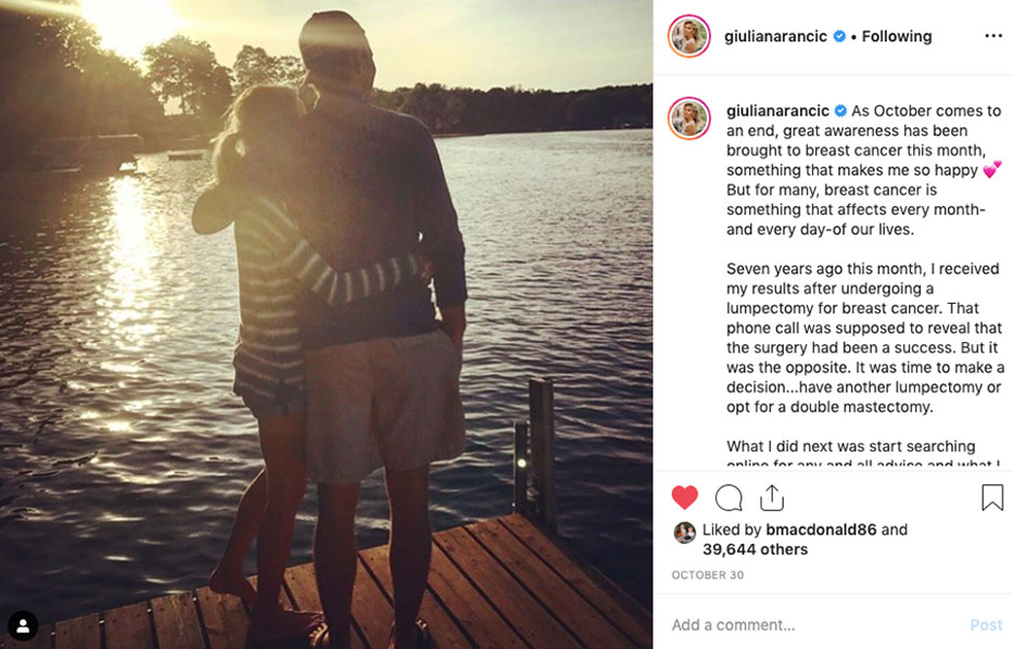 Simultaneously, we activated a collection of macro and micro Instagram influencers who were willing to share their personal breast cancer stories ranging from U.S. Soccer athlete Carli Lloyd to NBC news anchor Guilianna Rancic.