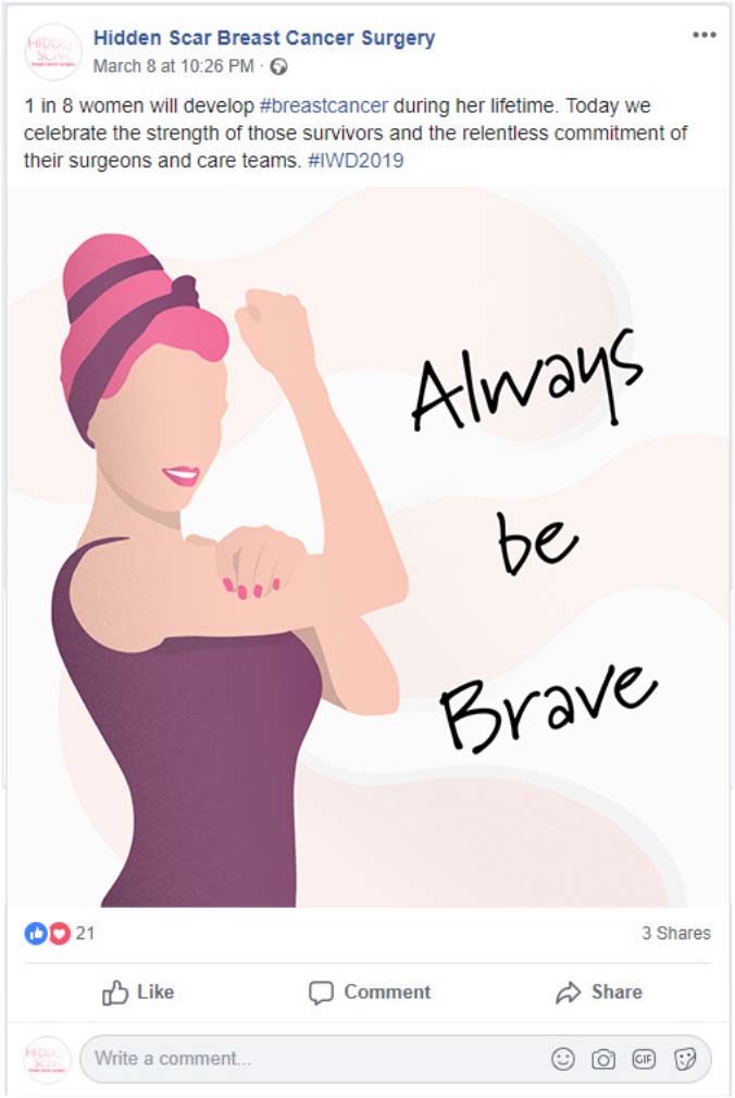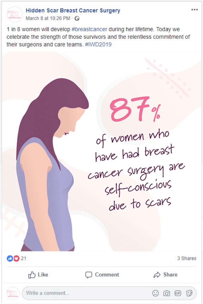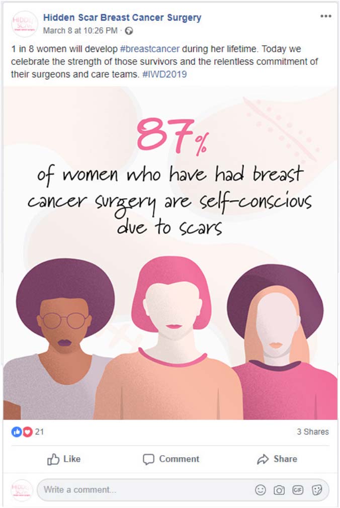 In conjunction with the microsite, we launched a robust social media campaign on Facebook and Instagram, targeting women who had been impacted by breast cancer in some capacity.